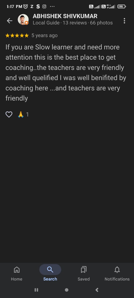 One of the best coaching centre i have come across! The faculty is highly experienced and always ready to help students with doubt. I would highly recommend this coaching centre to any one looking to improve their children of lower class. My son has improved after joining here. Thank you Roohi maam and staff of joshua planet.